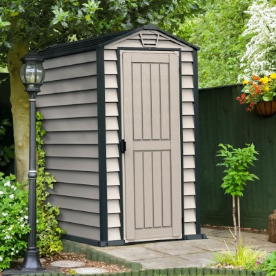Пластиковый хозблок EverMore . является наилучшим решением для хранения. Этот садовый сарай идеально подходит для использования в небольших помещениях, таких как апартаменты, патио и палубы. Двухцветный :Коричный и серый. Имитация черепичной крыши добавляет стиль внешнему виду сарая. Он имеет полностью армированный виниловый пол, который устраняет необходимость в строительстве фундамента.