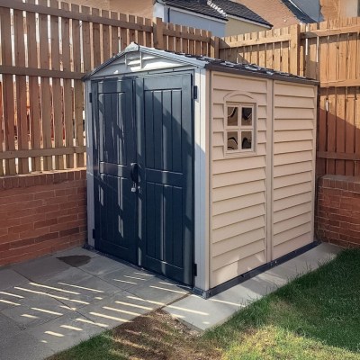 Пластиковый сарай StoreMate Plus выполнен из винилового огнестойкого пластика.