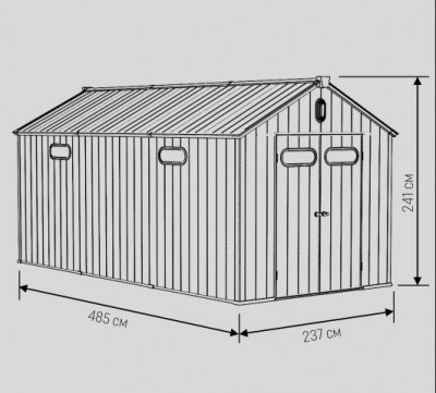 Сарай пластиковый Black Fox Summit 11,5м2 серый/темно-серый для установки на территории дачи, загородного дома. Выполнен из прочного пластика, стилизованного под дерево. Сарай устойчив к перепадам температур, не боится влажности, не гниет, не ржавеет. Двери - двойная распашная створка. Предусмотрено окно в коньке крыши, окна на стене и дверях, вентиляция. В комплекте пол. Цвет - серый/темно-серый