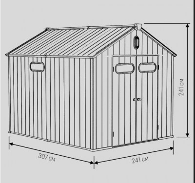 Сарай пластиковый Black Fox Summit 7,4м2 серый/антрацит для установки на территории дачи, загородного дома. Имитация под дерево. Выполнен из высококачественных экологически чистых материалов, которые подлежат вторичной переработке и вторичному использованию. Конструкция - стальной каркас и пластиковые панели. Хозблок легко собирается по инструкции. Не выцветает, не ржавеет, прост в уходе, удобен в эксплуатации. Имеет окна: окно в коньке, два окна на двери и одно на стене. Предусмотрена вентиляция, есть пол. Дверь распашная. Цвет: серый/антрацит.