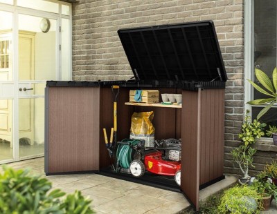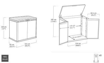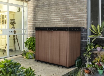 Ящик-шкаф Дарвин (Darwin) 1150 л коричневый. Открываемая крышка и двойные дверцы дают легкий доступ внутрь, где можно удобно хранить, класть и вынимать предметы. Сундук также оснащен механизмом закрытия. Встроенная вентиляция обеспечивает оптимальные условия хранения, защищая Ваши вещи от влаги и неблагоприятных погодных условий. Благодаря креплениям, удерживающим полки на своем месте, сундук обеспечивает максимальную функциональность и организацию пространства. Изготовленный по технологии Evotech+, он имеет элегантный вид "под дерево" и не нуждается в уходе. Проста в монтаже и устойчива к погодным условиям