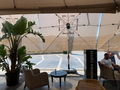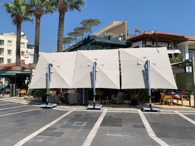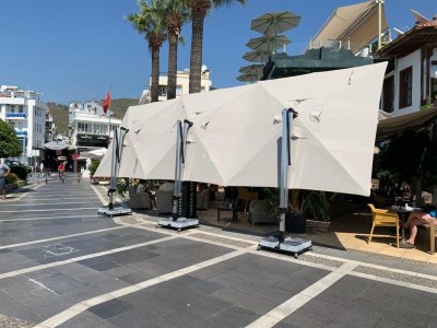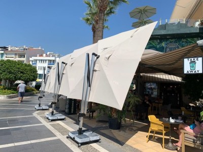 Зонт легко открывается и закрывается при помощи рукоятки, а сам механизм блокируется для безопасности. Купол может подниматься под углом до 60°. Для того, чтобы закрыть или открыть зонт Banana Plus, не нужно двигать мебель под ним.