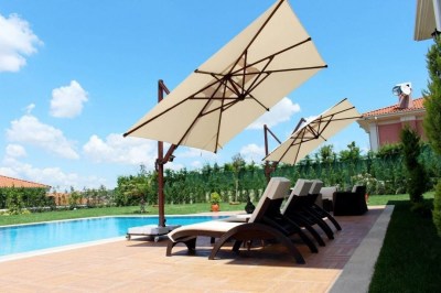 Зонт легко открывается и закрывается при помощи рукоятки, а сам механизм блокируется для безопасности. Купол может подниматься под углом до 60°. Для того, чтобы закрыть или открыть зонт Banana Plus, не нужно двигать мебель под ним.