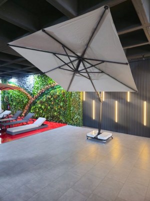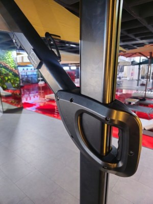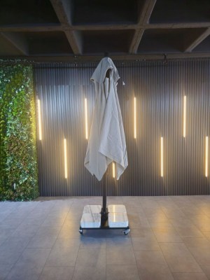 Banana Plus Premier - новейшая модель компании THEUMBRELA, сочетающая в себе высококачественные материалы, впечатляющие технологии и простое управление. Это особенный продукт для тех, кто ищет крутой дизайн, стильный внешний вид и функциональность среди зонтов с боковой опорой. Зонт легко открывается и закрывается при помощи рукоятки, а сам механизм блокируется для безопасности. Купол может подниматься под углом до 60°. Для того, чтобы закрыть или открыть зонт Banana Plus, не нужно двигать мебель под ним.